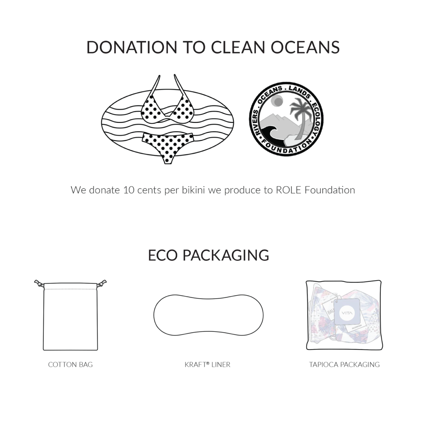 Nous sélectionnons avec soin nos tissus, provenant soit d’Europe; notamment à base de tissus recyclés ECONYL ou REPREVE, ou directement fabriqués sur l'île de Bali où a lieu la production, pour toutes les matières non-recyclées. Cette exigence assure la qualité irréprochable de nos maillots, tout en poursuivant notre ambition d’utiliser à terme 100 % de matières recyclées.