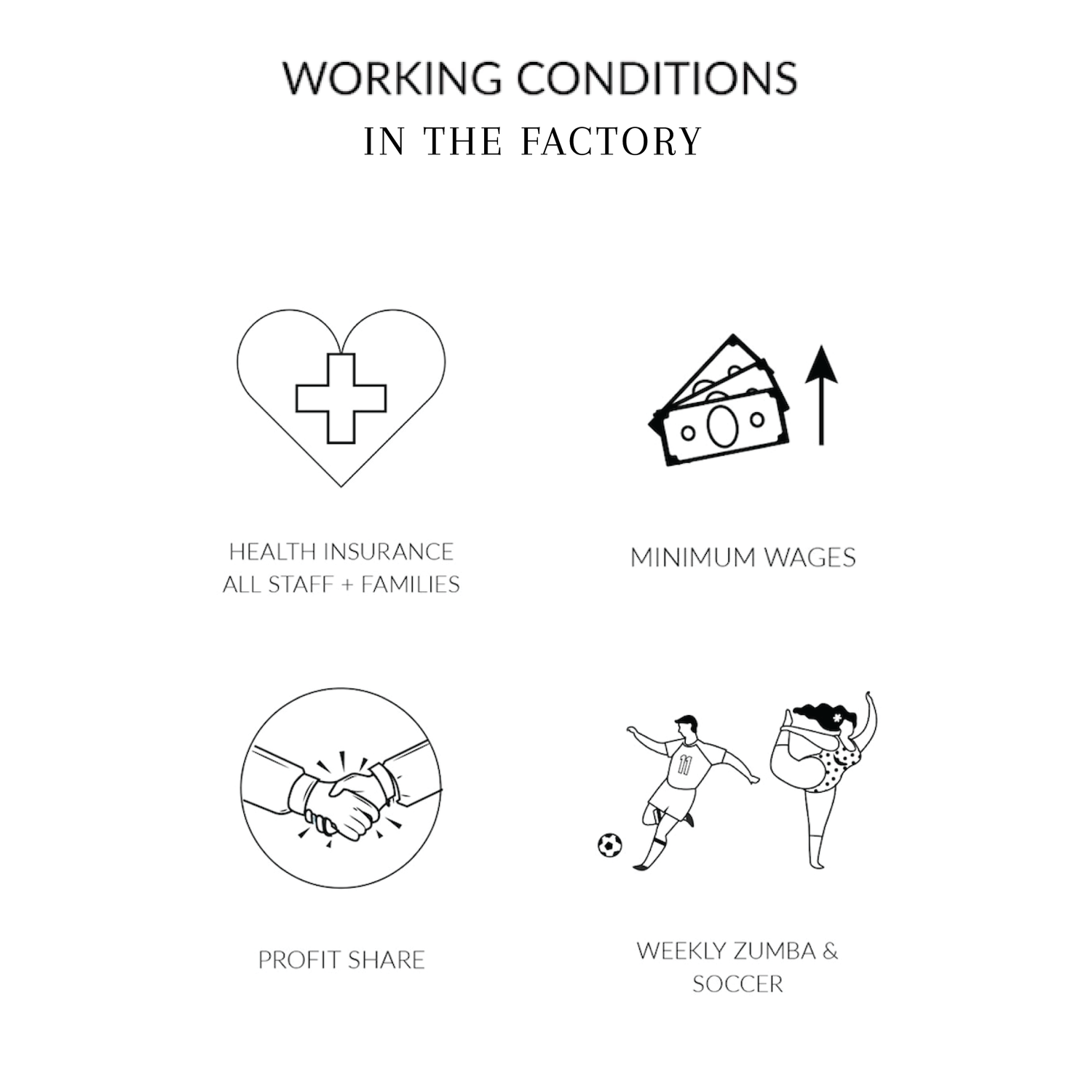 Notre atelier, situé à Bali, est une entreprise familiale à taille humaine où le respect et des conditions de travail exemplaires sont au cœur des valeurs. Les collaborateurs bénéficient d’un temps de travail inférieur à 40 heures par semaine, d’une rémunération pouvant atteindre jusqu’à trois fois le salaire minimum, ainsi que d’un treizième mois. Ces engagements forment le socle d’une relation saine et durable avec nos fournisseurs et chaque personne impliquée dans la création des maillots Cybëlle. Chaque employé dispose d’une couverture santé complète pour lui et sa famille, un élément essentiel en Indonésie. La créatrice se rend sur place chaque trimestre pour veiller au maintien de ces standards humains et artisanaux.